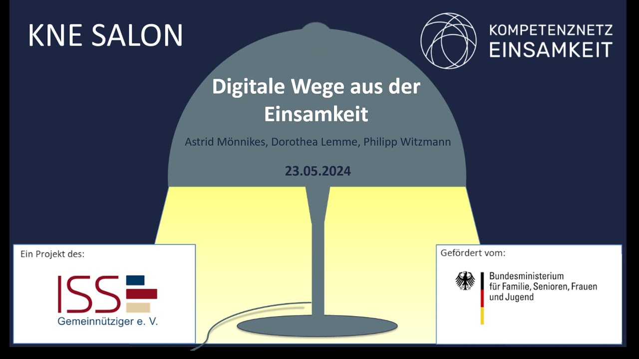 Im 13. KNE Salon haben wir uns digitalen Angeboten bei Einsamkeit gewidmet und diskutiert, was notwendig ist, damit digitale Teilhabe möglich ist und inwiefern digitale Angebote Einsamkeit lindern und Menschen (auch in der analogen Welt) miteinander verbinden können.